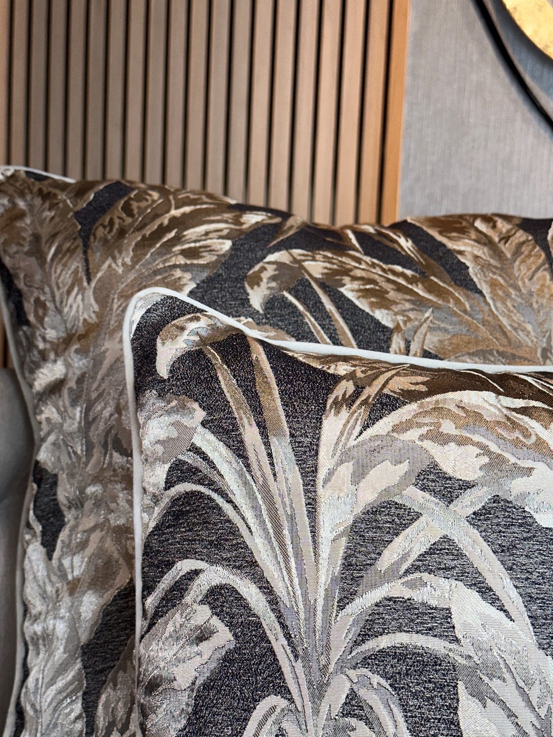 Descripción: Cojín decorativo importado de alta gama con acabados exclusivos de finos textiles