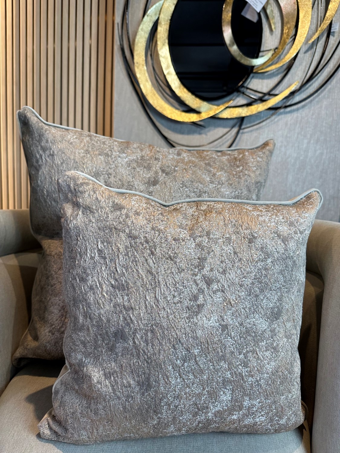 Color: Taupe con destellos dorados