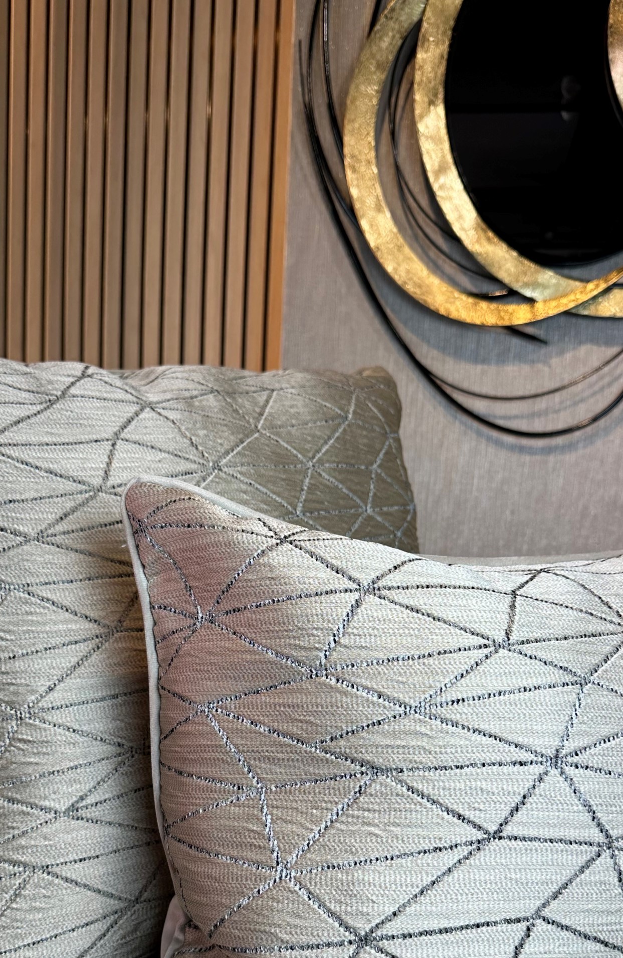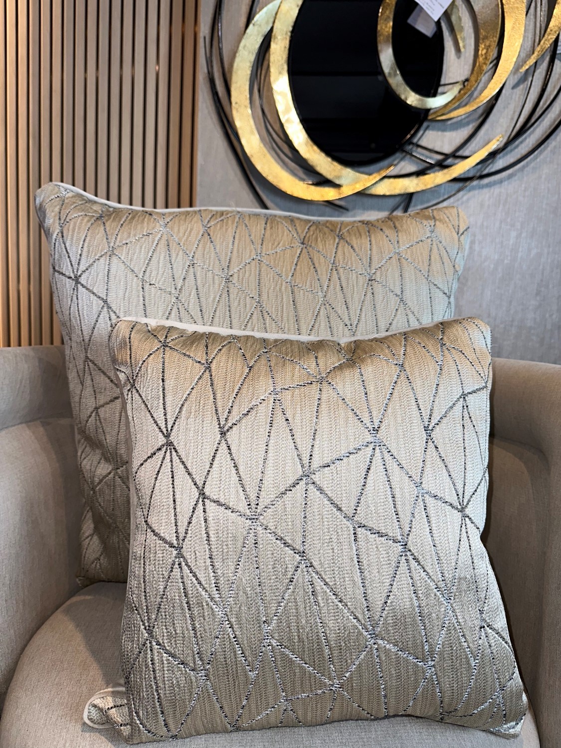 Descripción: Cojín decorativo importado de alta gama con acabados exclusivos de finos textiles
