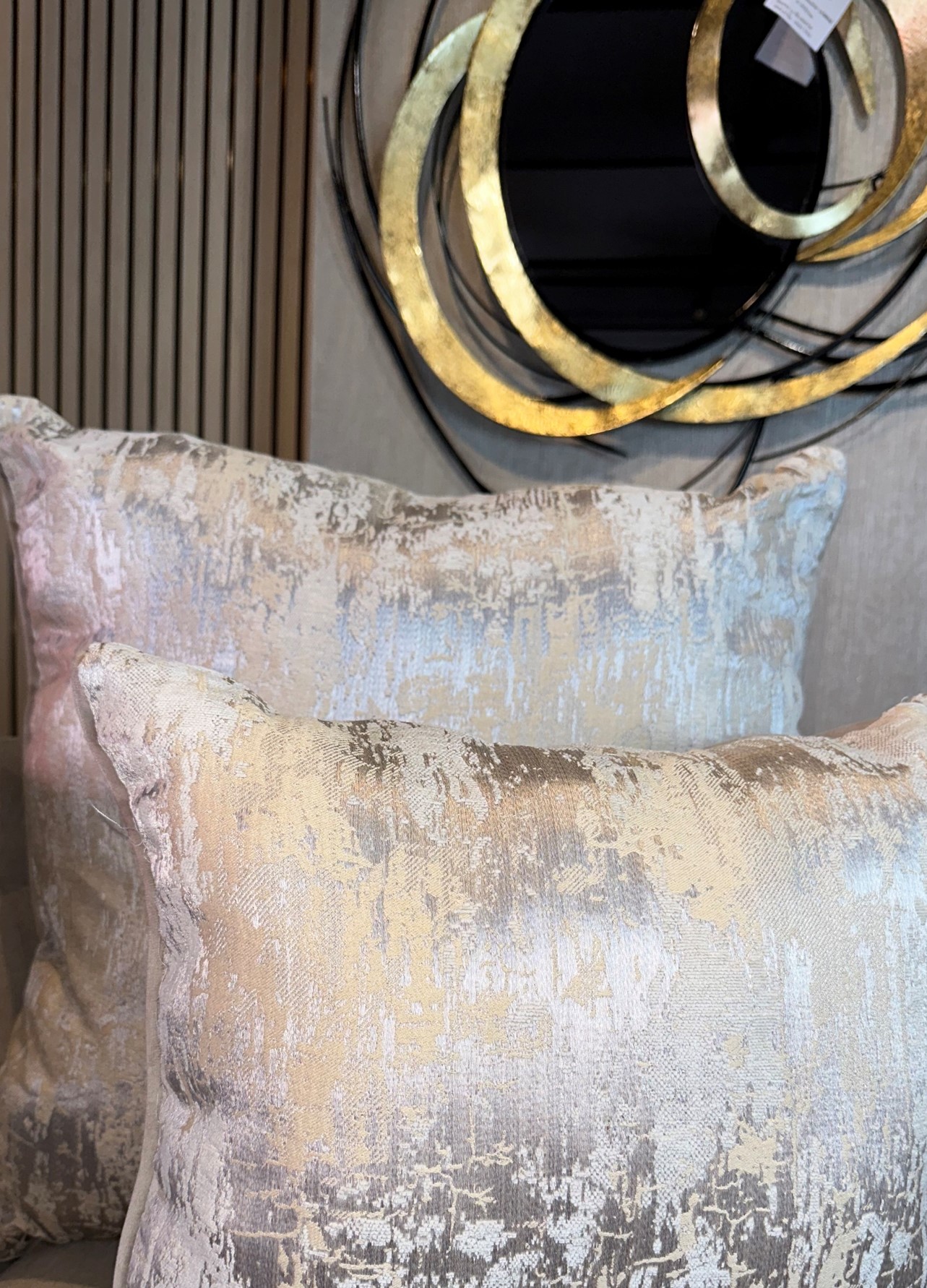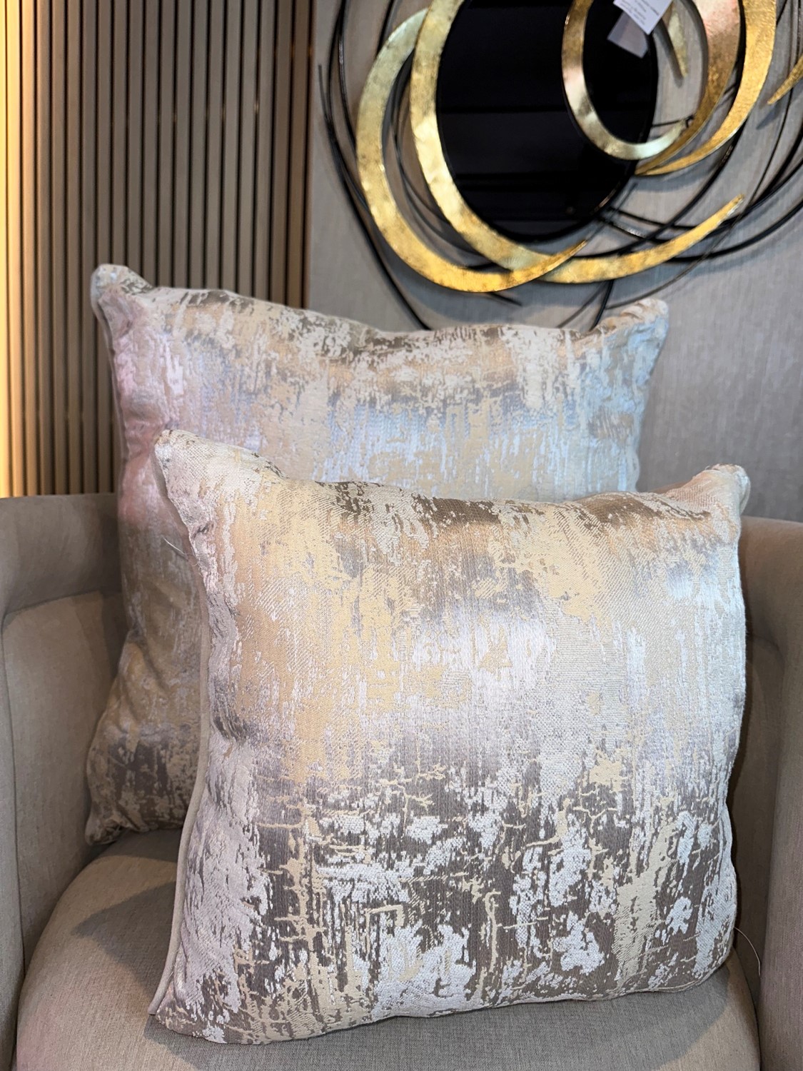 Color: Fondo beige con desgastes plateado