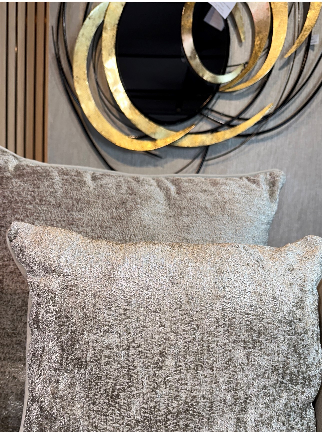 Descripción: Cojín decorativo importado de alta gama con acabados exclusivos de finos textiles